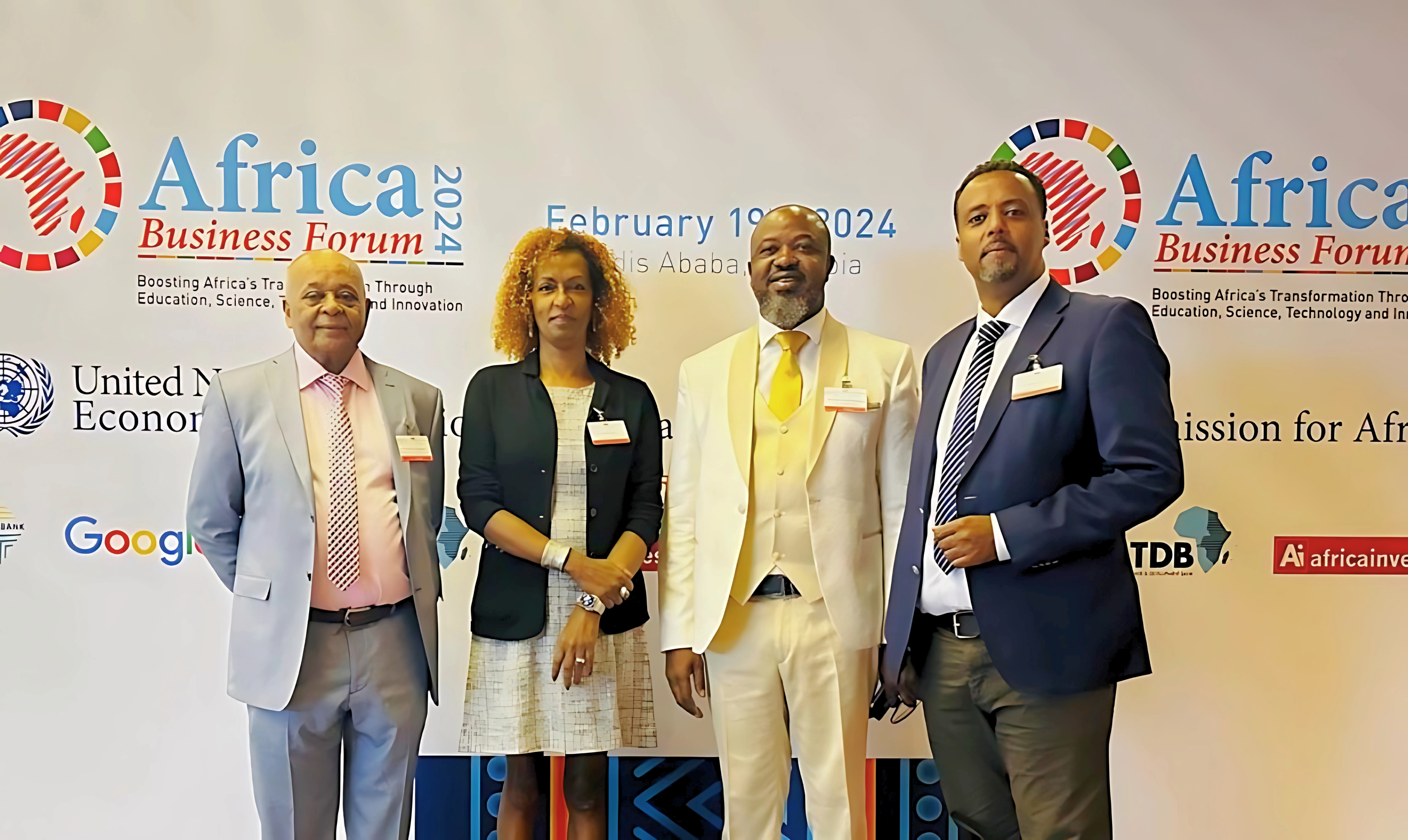 Africa Business Forum in Addis Ababa, February 19, 2024. Nkanyiso Maqubela, Prof. Mutwira, Zimbabwe Minister of Higher & Tertiary Education, and Thamsanqa Maqubela, President of the African Council for Graduates.