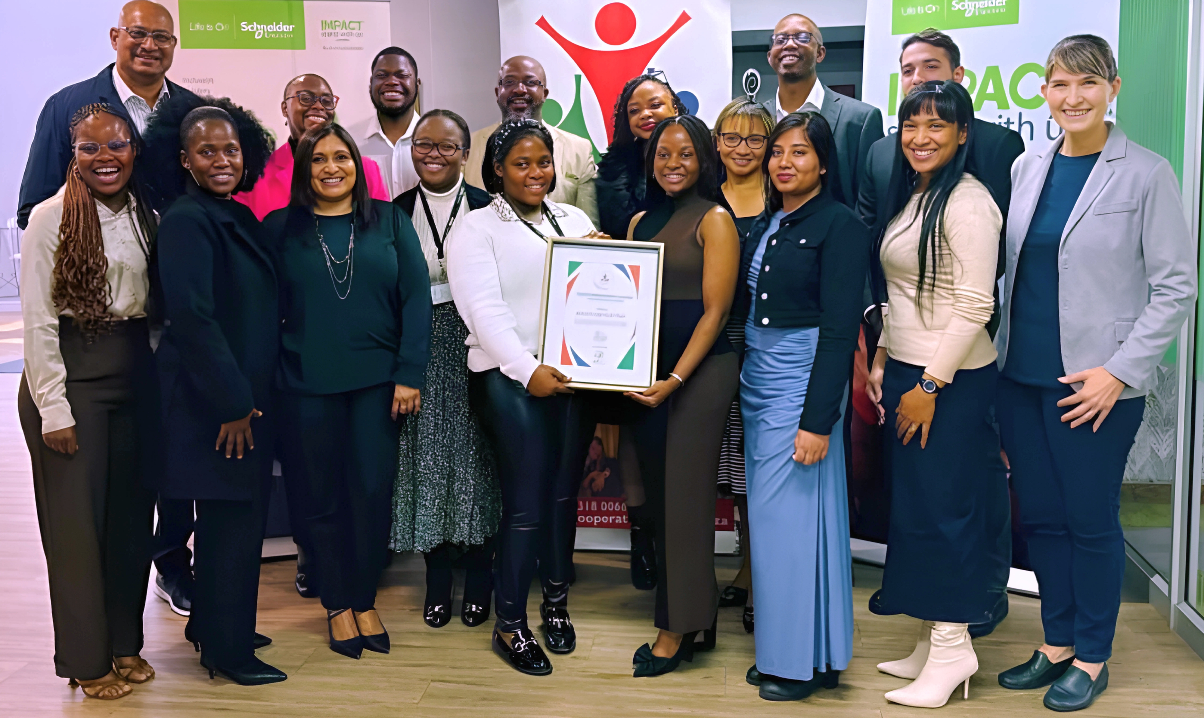 The Schneider Electric team, along with CEO Mr. Devan Pillay, proudly received the Youth Employment Award from Mr. Thamsanqa Maqubela, SACGRA Founder & CEO, on May 27, 2024, in Midrand.